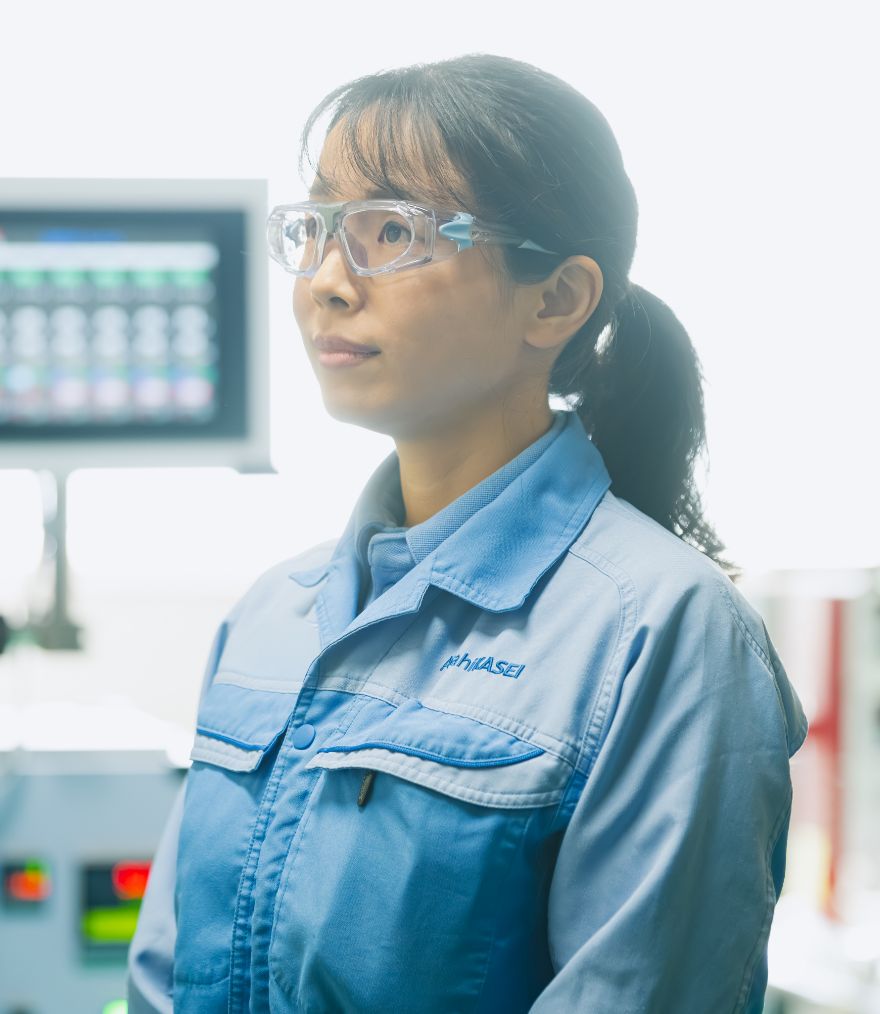 「部署には30年前の事例まで覚えている大先輩がいて、よく相談に乗っていただいています。まさに生き字引のような存在で、その支えがとても心強いんです。こうした人がそばにいることも、旭化成の大きな魅力だと感じています」