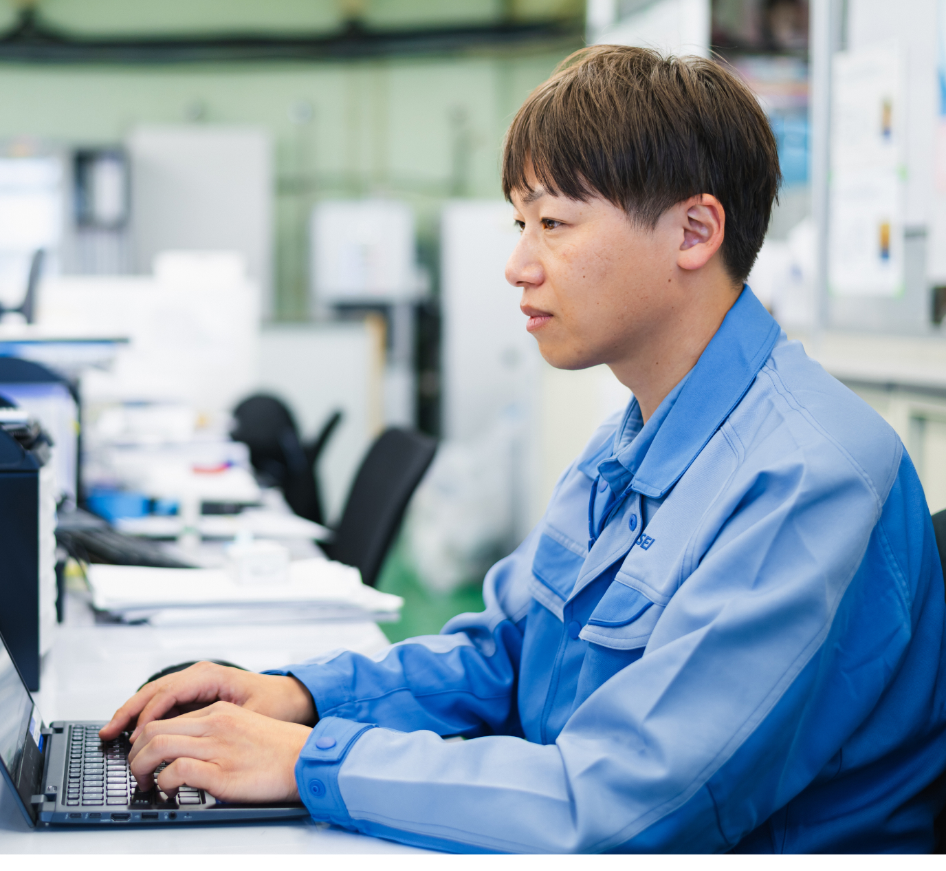 ベンベルグ工場の電気設備保全を担当しています。長い歴史を持つ工場であるため、設備一つひとつの状態や特性を的確に把握しながら、生産設備の安定稼働を支えることが私のミッションです。また、DX推進による業務効率化にも取り組み、より安定した保全体制の構築を進めています。