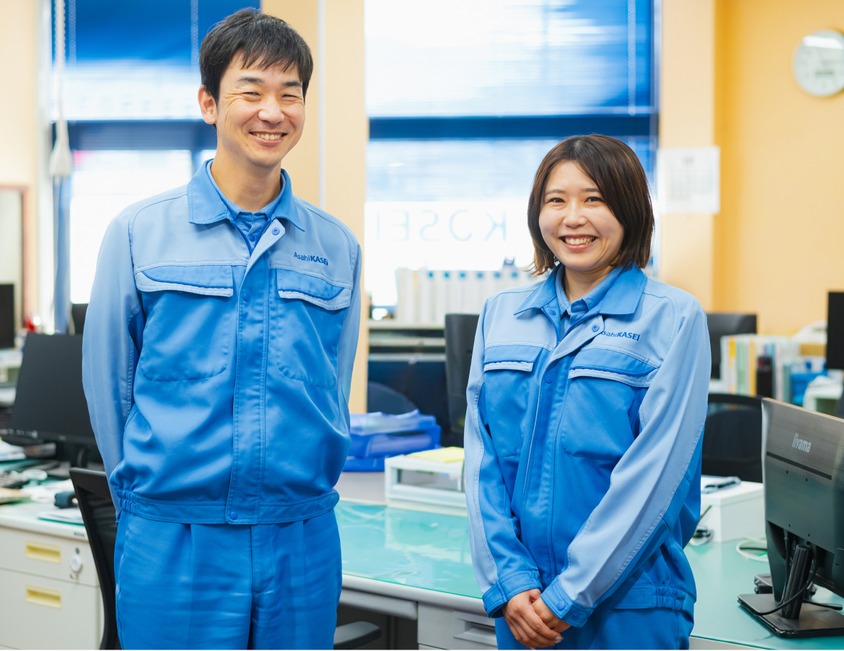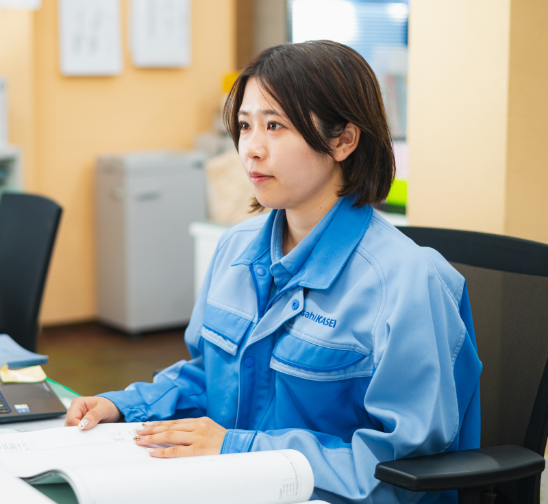 私が旭化成に興味を持ったきっかけは、同じ研究室の女性の先輩が勤めていたことでした。土木や建築の専門性が、総合化学メーカーでどのように活かせるのだろうか。そんな疑問から会社について調べ始めました。そこで目に飛び込んできたのが、旭化成が所有する水力発電所の改修工事に関するニュースでした。『サランラップ®』の会社にダムや発電所があるとは想像もしていなかっただけに、ここなら自分の専門性を発揮できる仕事があるのではないかと、一気に関心が高まりました。さらに、事業領域の幅が広いことから、将来的には電力分野にとどまらず、さまざまなプラントに携われる可能性がある点にも魅力を感じました。鹿児島出身の私にとって、九州で働ける環境があることも大きな後押しになりました。入社後には研究室の先輩と再会することができ、慣れない社会人生活を送る中で、折に触れて温かいアドバイスをいただきました。その存在はとても心強く、今も感謝しています。