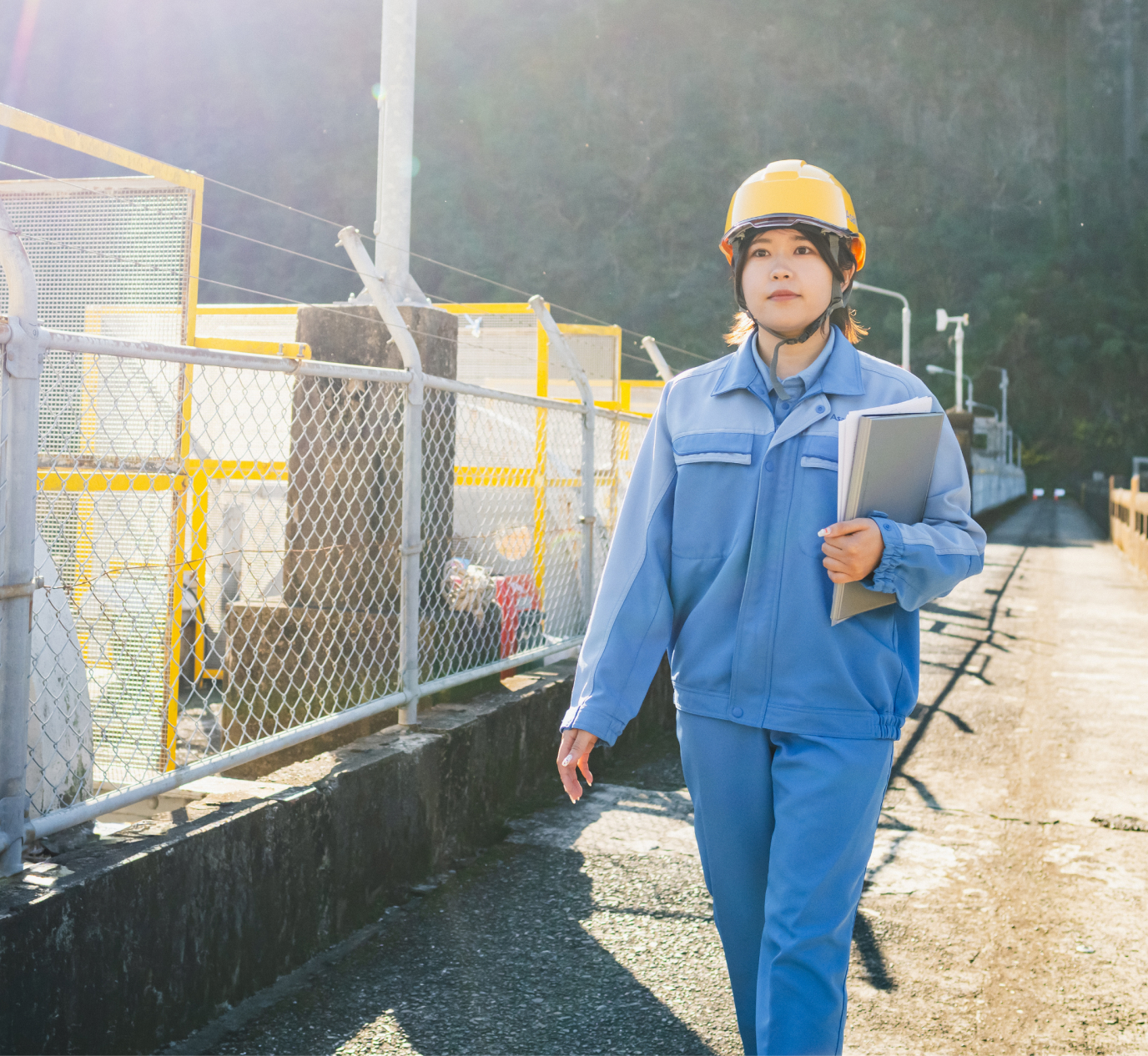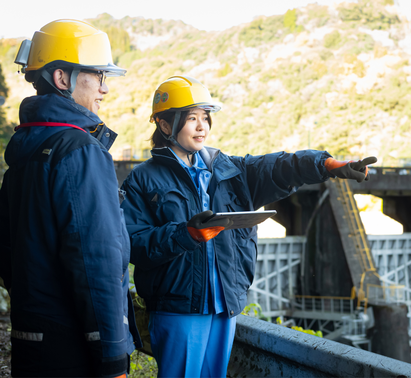 まずは現在取り組んでいる水力発電所の改修工事を完遂し、今後100年間にわたってクリーンなエネルギーを安定して届けられる体制を整えることが目標です。その後は、星山ダムの改修工事にも携わりたいと考えています。自分が関わった調査結果をもとに計画を立案し、実際の工事まで一貫して担当できればと思っています。未来の社会に向けて価値を提供できる仕事には、大きなやりがいを感じます。また、発電所やダムに限らず、工場プラントの保全や改修にも携わってみたいと考えています。延岡市内には旭化成の工場が点在しており、それらを結ぶ配管が地中に張り巡らされています。こうしたインフラも、長期的な視点での更新や機能強化が求められる段階に来ています。将来的には行政とも連携しながら、地域全体に関わる大規模なプロジェクトを動かせるエンジニアになることが目標です。
