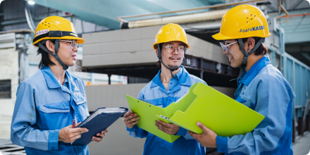 旭化成建材の境・穂積地区は、共に「良質な空間」を追求し、社会に誇れる製品をつくり続ける拠点です。外壁材「へーベル」は発売以来50年以上にわたり、耐久性・耐火性に優れた建材として多くの建物に採用されてきました。また、フェノール樹脂を原料とする断熱材「ネオマフォーム」は、業界トップクラスの断熱性能を誇り、建物の高断熱化に欠かせない存在です。両工場ではワークライフバランスを重視した働き方が推進されており、関係会社を含めると約600名の従業員が活躍しています。