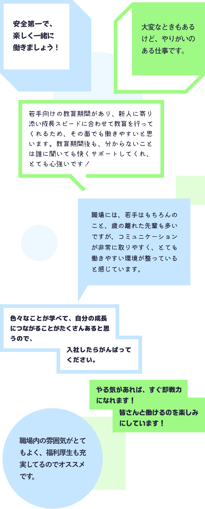 ベテランの方たちとも、気楽に何でも話せて、上司も部下の事をとても考えてくれている。