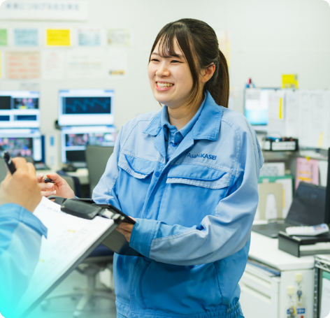 発泡工程での異常処置。一人で処置ができてから自信につながり、積極的に仕事に取り組めるようになった。