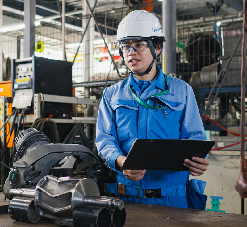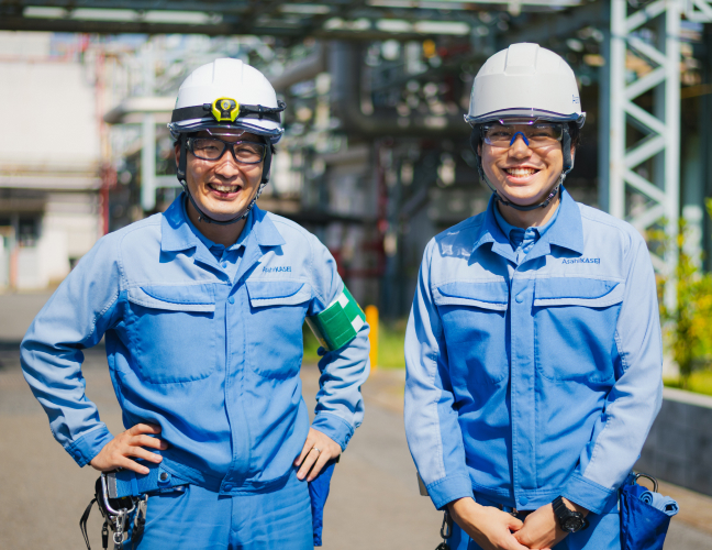 私が旭化成への入社を決めたのは、インターンシップへの参加がきっかけでした。特に印象的だったのは、和気あいあいとした雰囲気の中、若手社員が議論の場で積極的に発言している姿でした。“さん付け”に象徴される上下の垣根を感じさせないフランクな社風が、若手の主体的な発言や行動を後押ししていると感じたのです。そしてそれが、社員一人ひとりの成長につながっていると思いました。また、高専卒で部長職に就いている先輩の姿に、学歴に関わらず努力や実力が公平に評価される会社だと実感したことも入社動機となりました。それまで旭化成について詳しく知りませんでしたが、インターンシップをきっかけに調べる中で、昨日まで世界になかったものを創造し続ける企業姿勢に強く惹かれるようになりました。