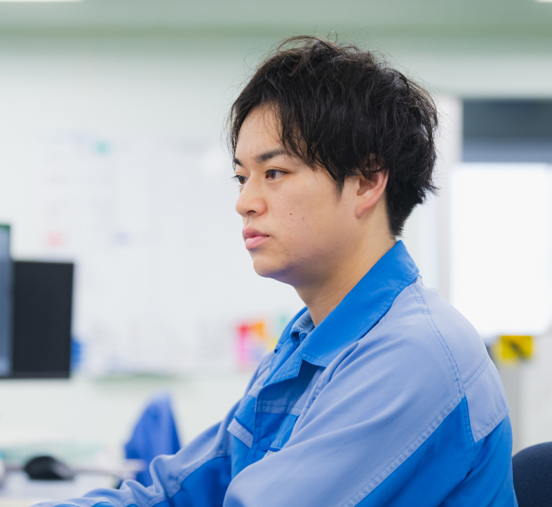 何ごとにも真摯に向き合い、粘り強く取り組む姿勢が印象的です。業務の枠にとらわれず、どのような課題に対しても“自分ごと”として取り組む姿勢は、周囲からも高く評価されています。設計の経験によって設備本来のあるべき姿を知っていることは大きな強みですが、今後は保全に関する経験も重ねていくことで、よりバランスの取れた人財へと成長してくれることを期待しています。飲み会で先輩方と和気あいあいと過ごす姿からも、誰からも愛されている人柄が伝わってきます。