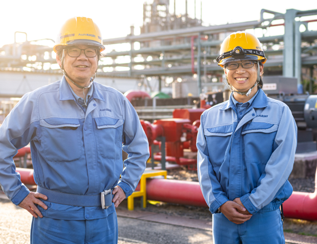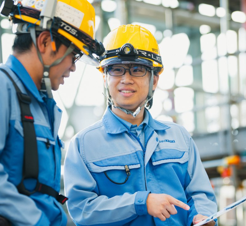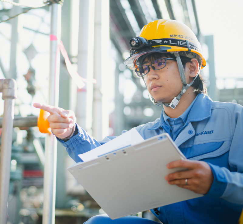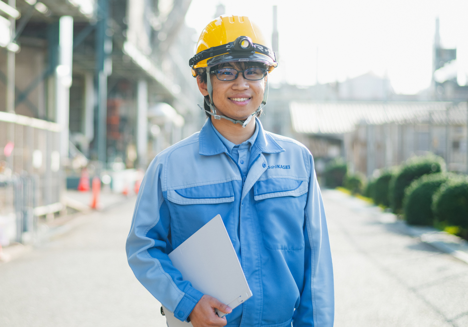 友人のお父様が旭化成に勤務しており、風通しのよい職場で、若手社員へのサポートも手厚いと聞いたことが、関心を持つきっかけでした。旭化成というとサランラップしか知らなかったのですが、調べてみると非常に多岐にわたる事業を展開しており、会社としての基盤がしっかりしていて安定性があると感じました。決め手となったのは『私たち旭化成グループは、世界の人びとの “いのち” と “くらし” に貢献します。』というグループミッションです。私は高専で機械工学を学び、ものづくりの基礎を身につけました。その知識を活かして仕事をするからには誰かに貢献できる仕事をしたいと考えていたので、このミッションは心に強く響きました。実際に入社してみると、聞いていた以上に働きやすく、仕事の相談もしやすい雰囲気があり、風通しの良さに驚きました。