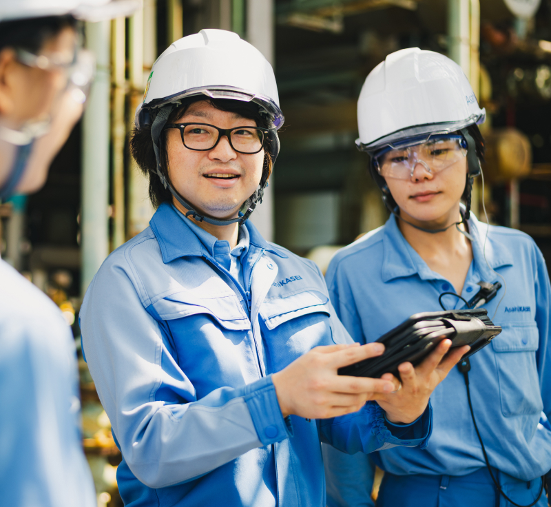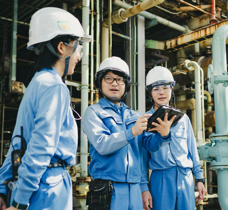 設備導入、保安検査、差別化製品のプラント試作担当として、生産における課題解決のための設備検討・導入業務に携わりました。現場経験を活かし、実際にその設備を使う現場の人たちにとって安全で使いやすい設備の選定・導入に取り組みました。