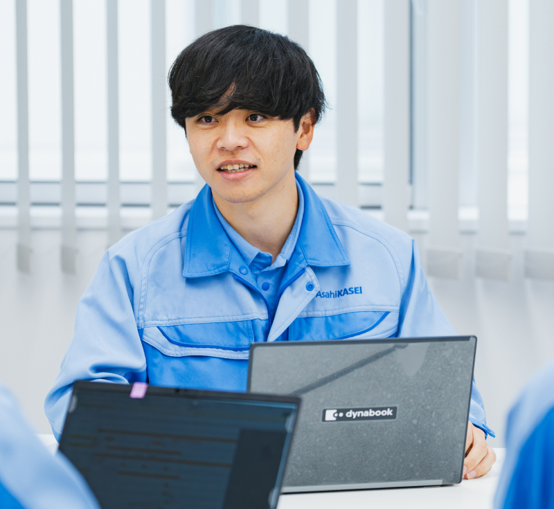 旭化成に興味を持ったきっかけは、高専時代の先輩が働いていたことです。お話を聞くと、若いうちから責任ある仕事を任せてもらえる環境や、幅広い分野に挑戦できる機会があると知り、ここなら自分も大きく成長できると感じました。高専では電気回路や電気制御など、電気に関する幅広い知識を学びました。専攻内容が直接仕事に関係することは少ないものの、粘り強く課題に向き合う姿勢や、細かな改善の積み重ねが成果につながる点は、今の仕事に活きていると感じます。また、入社1年目にサランラップの生産設備を増設する仕事を担当し、先輩の言葉通り、若手のうちから責任ある仕事を任せてもらえたことを実感しました。上司は「まず自分でやってみよう」と信頼して任せてくれ、うまくいかないときは必ずフォローしてくれます。その見守りがある安心感は、挑戦する上での大きな支えでした。