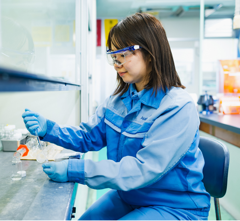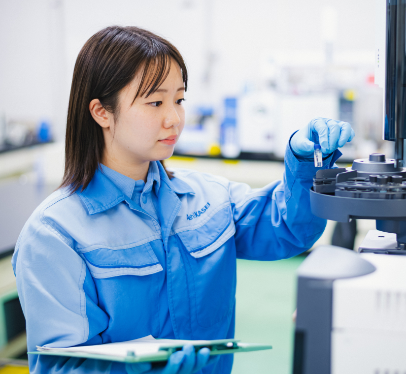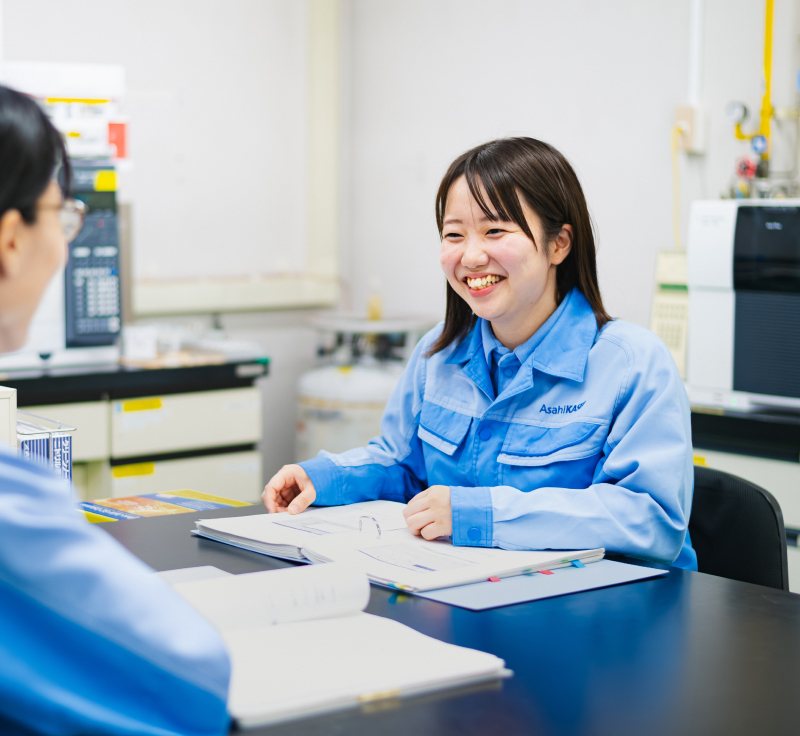 クロマト装置を使った分析のプロフェッショナルになることが当面の目標です。その後は他の領域の業務にも挑戦し、キャリアの幅を広げたいと考えています。私自身のインターンシップの経験を振り返りながら、これから旭化成を志望する皆さんのサポートにも取り組んでみたいと思っています。また、旭化成では仕事と家庭の両立を支援する制度が充実しており、周りの多くの社員が産休・育休などを経て復職し、時短勤務などの制度も活用しながら仕事を続けています。様々なライフイベントを経ても、変わらず力を発揮し続けられる環境が整っていることは、旭化成の大きな魅力です。私自身も、これから多くの節目を迎える中で、先輩方をロールモデルにしながら、世界の人びとに貢献する研究者として成長していきたいと考えています。